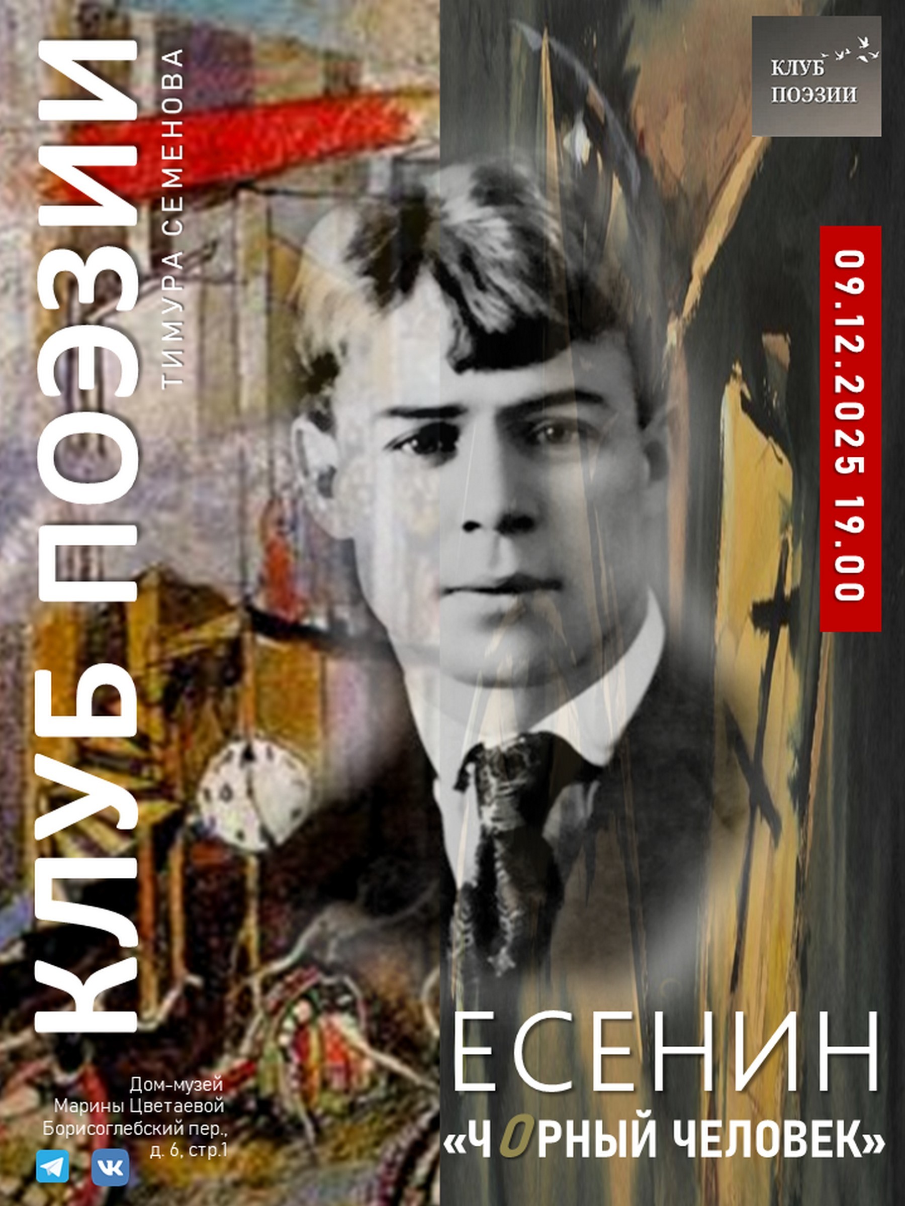 9 декабря (это вторник) в 19.00 Клуб поэзии проведет очередное заседание сезона 2025/26 года, которое, как мы и обещали, снова будет посвящено великому трагическому русскому поэту ХХ века Сергею Есенину.
