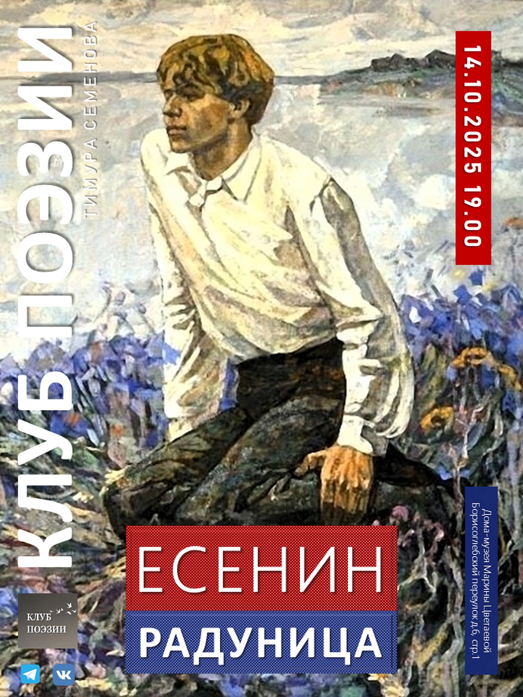 14 октября (это вторник) в 19.00 Клуб поэзии проведет очередное заседание сезона 2025/26 года, которое будет посвящено, пожалуй, самому знаменитому и самому любимому русским читателем поэту ХХ века – Сергею Есенину.