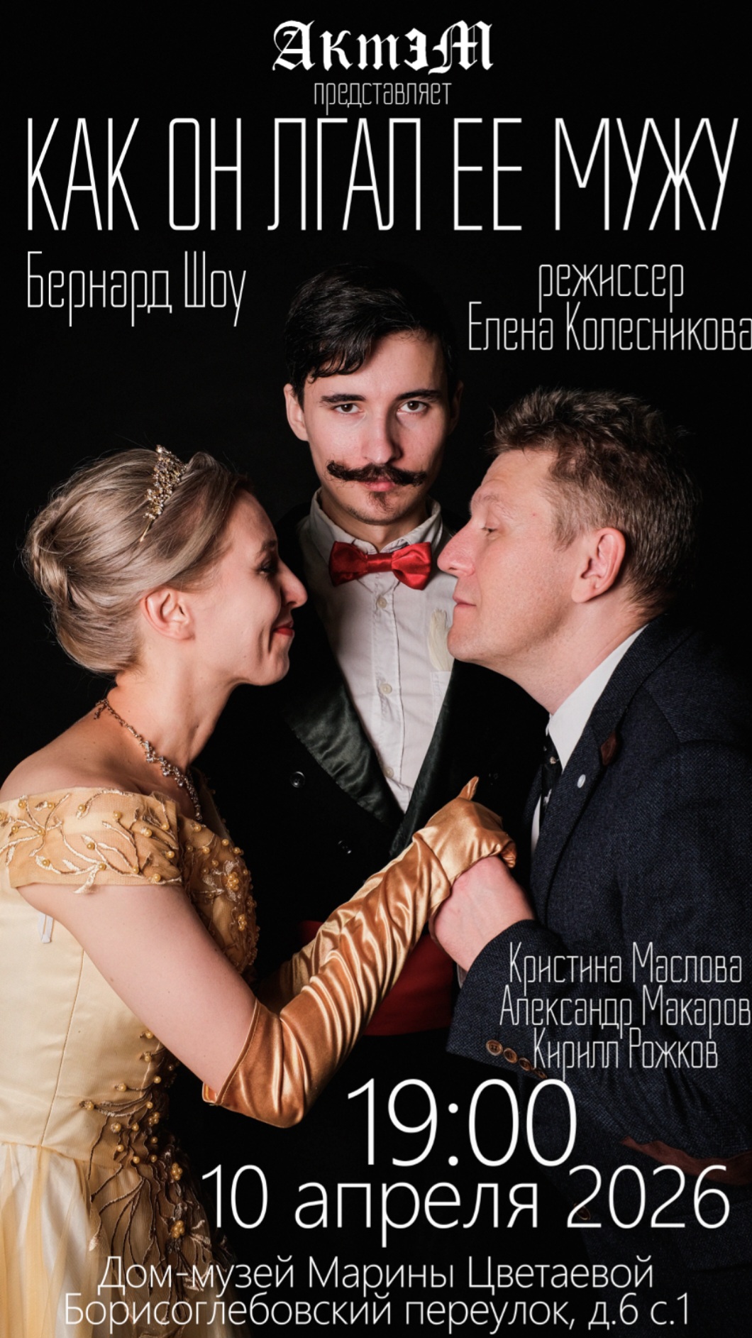 10 апреля (это пятница) в 19.00 в Доме-музее Марины Цветаевой состоится вечер одноактных комедий в постановке театра «АктэМ».