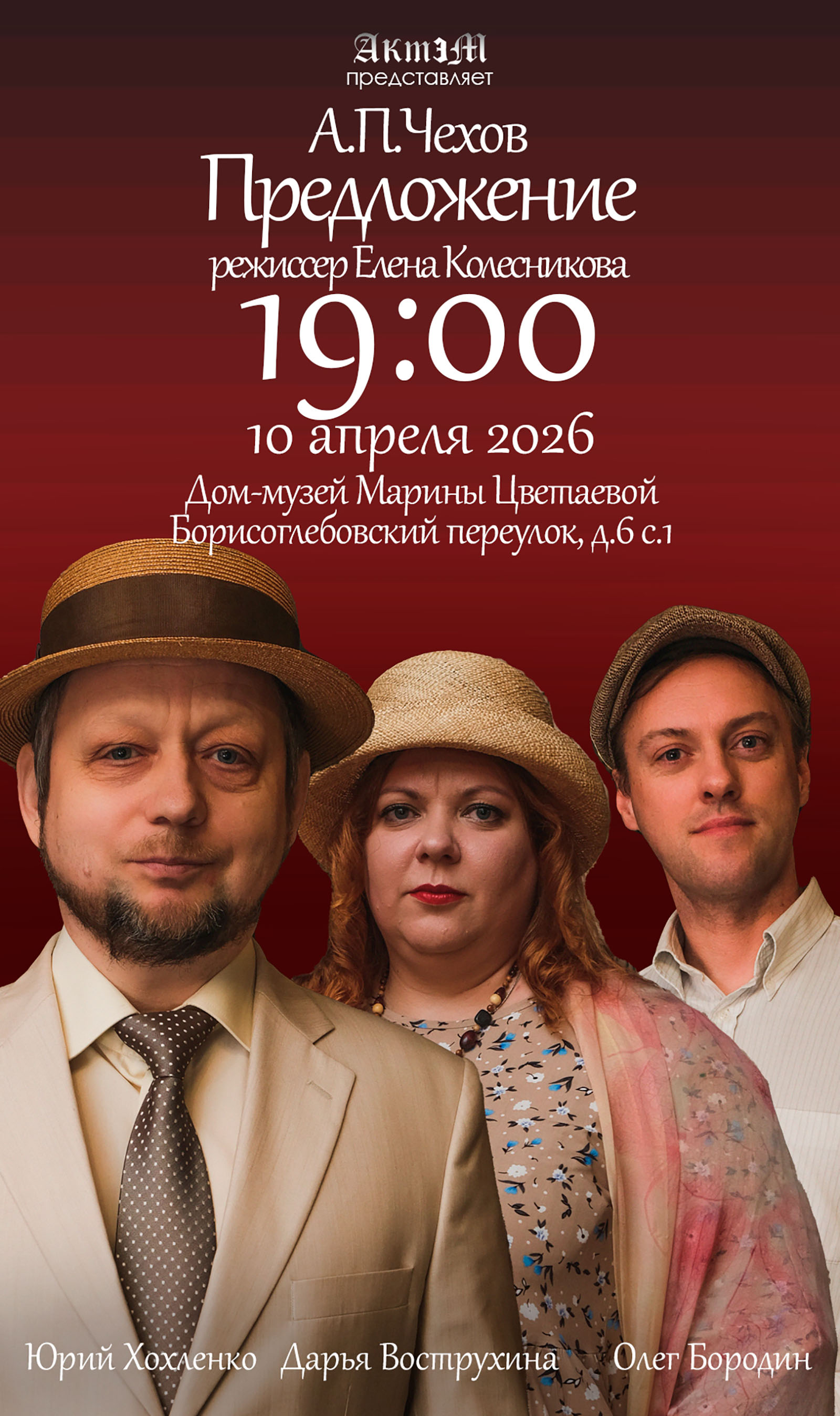 10 апреля «АктэМ» представит в Доме-музее Марины Цветаевой три спектакля: