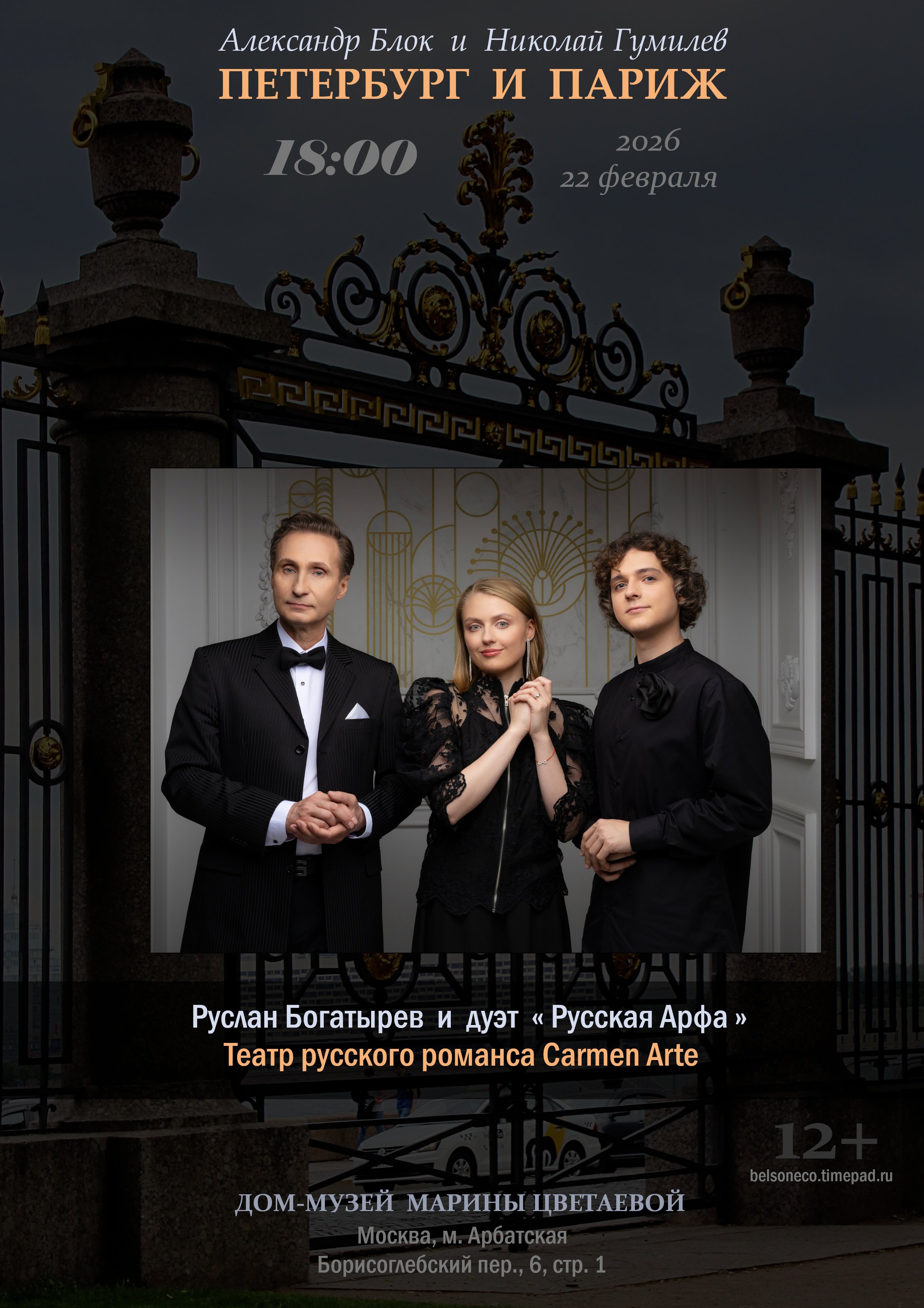 Дорогие друзья, 22 февраля (это воскресенье) в 18.00 приглашаем вас на концерт «Петербург и Париж. Блок и Гумилев» из цикла «Серебряное кольцо Москвы».