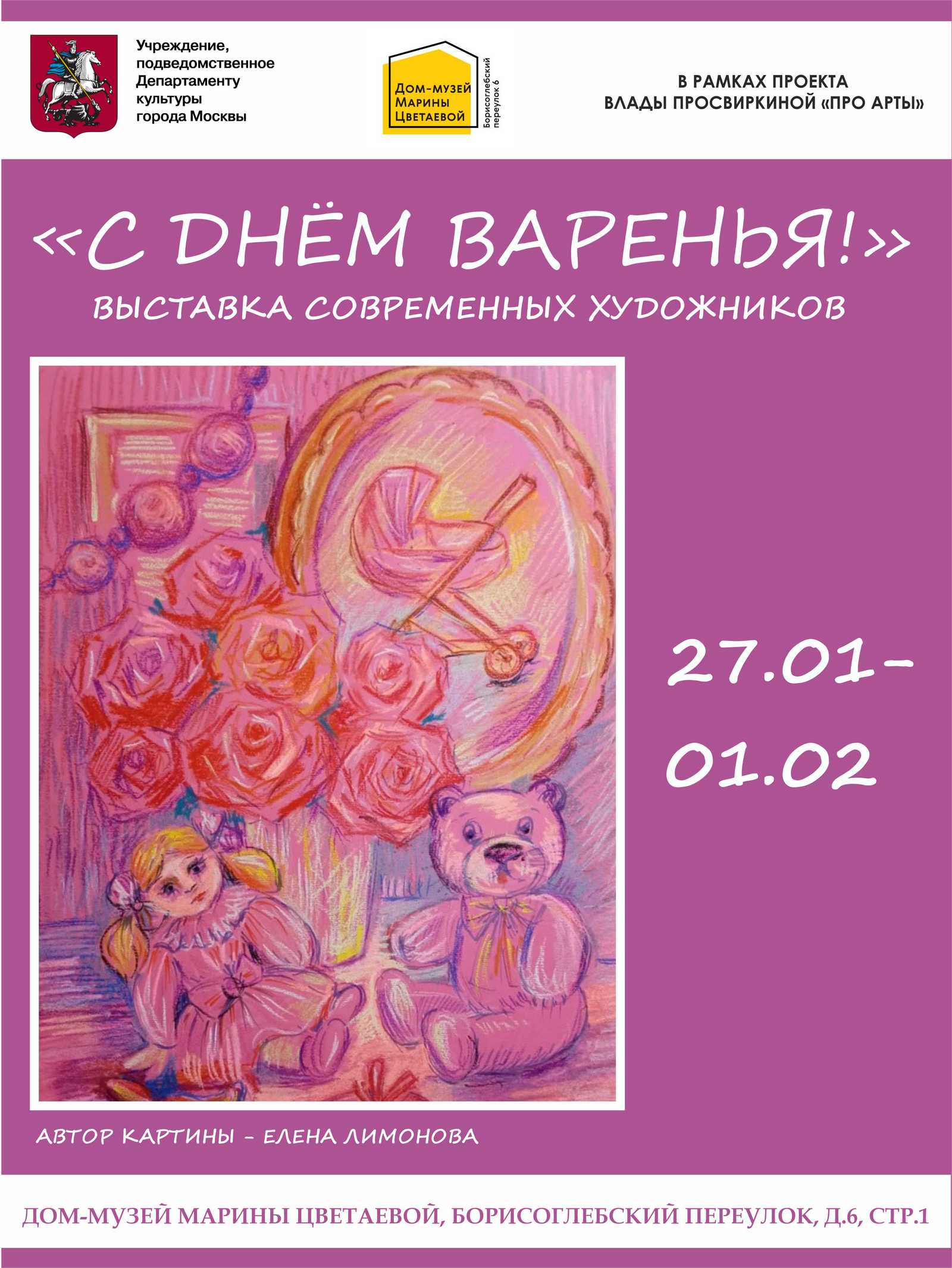 С 27 января по 1 февраля 2026 года в Доме-музее Марины Цветаевой пройдет выставка современного искусства «С днем варенья!» в рамках авторского проекта Влады Просвиркиной «ПРО АРТЫ».